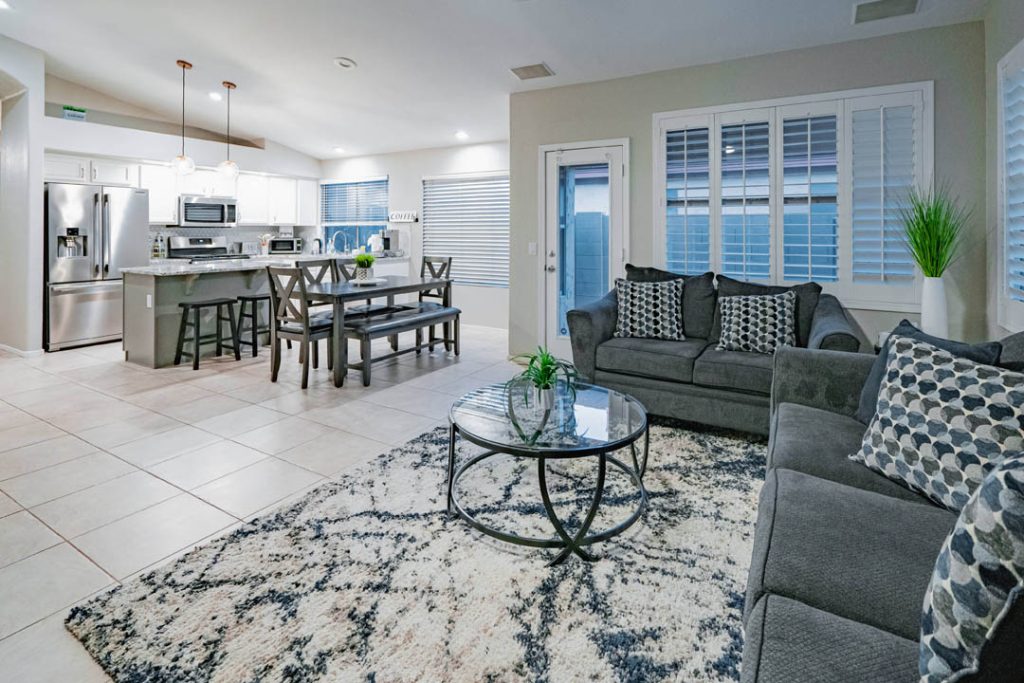 As you step inside, the captivating entertaining space welcomes you. Indulge in pure comfort as you sink into the inviting sofa, curl up with a captivating book, or plan your exciting Arizona adventures.
