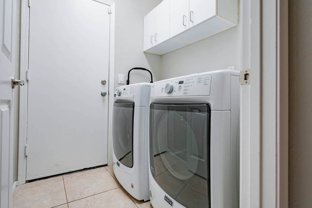 The home boasts two full bathrooms, ensuring convenience and comfort for all guests. Stocked with clean towels and essential toiletries, these bathrooms guarantee a worry-free stay. Pamper yourself with a soothing soak or a quick refreshing shower.